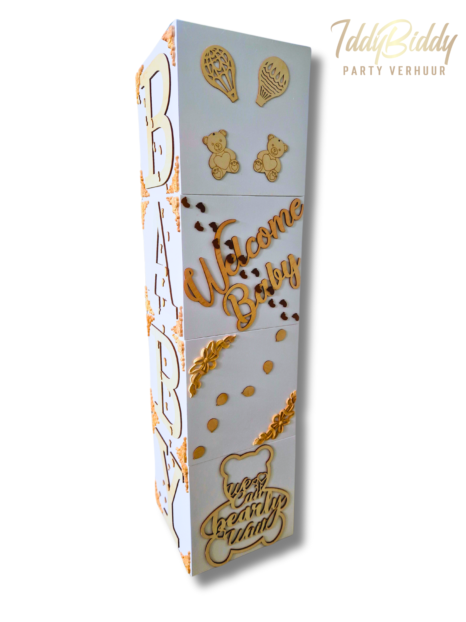 Maak jouw babyshower extra speciaal met onze schattige decoratieve babyblokken! Deze stijlvolle blokken zijn perfect om de ruimte te versieren en een speelse, feestelijke sfeer te creëren. Ideaal als centerpiece of fotodecoratie en een echte blikvanger voor jouw babyshower of fotoshoot. Voeg een persoonlijke en charmante touch toe aan dit bijzondere moment.