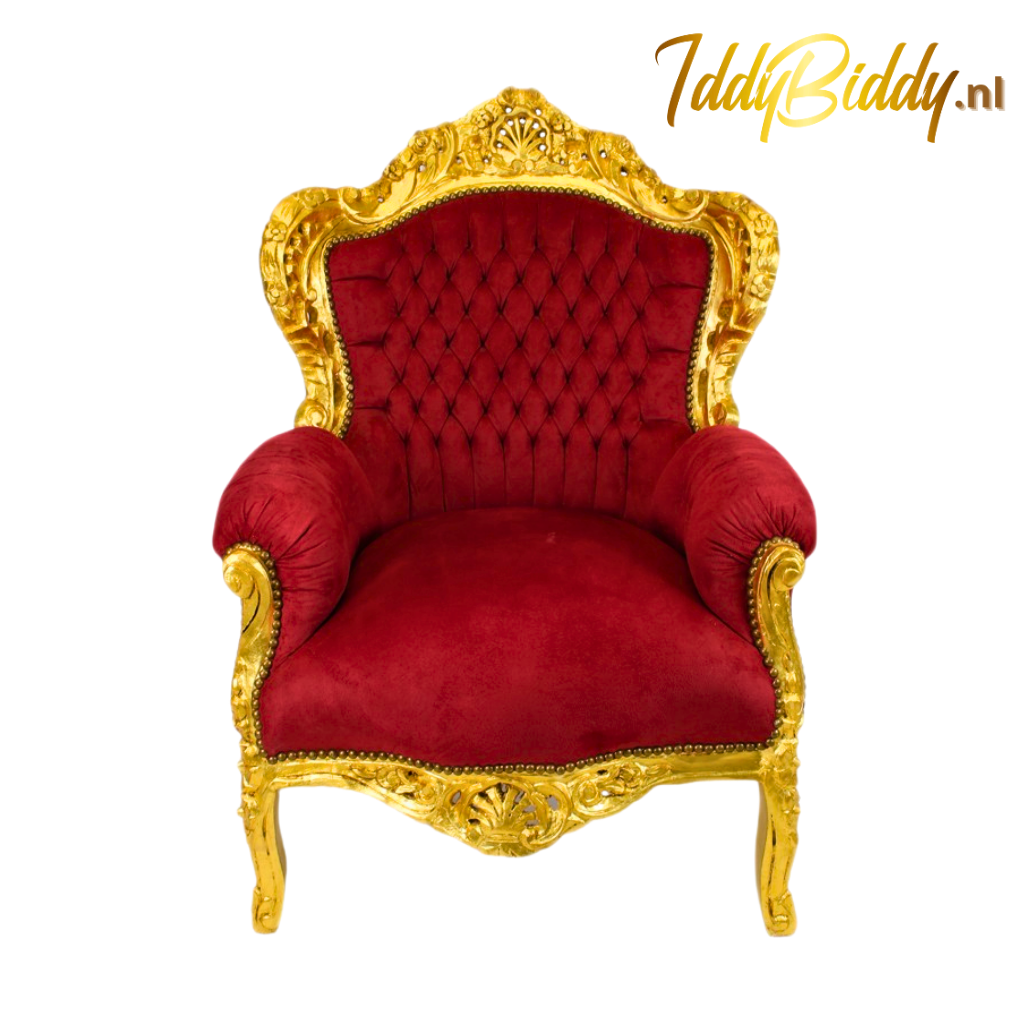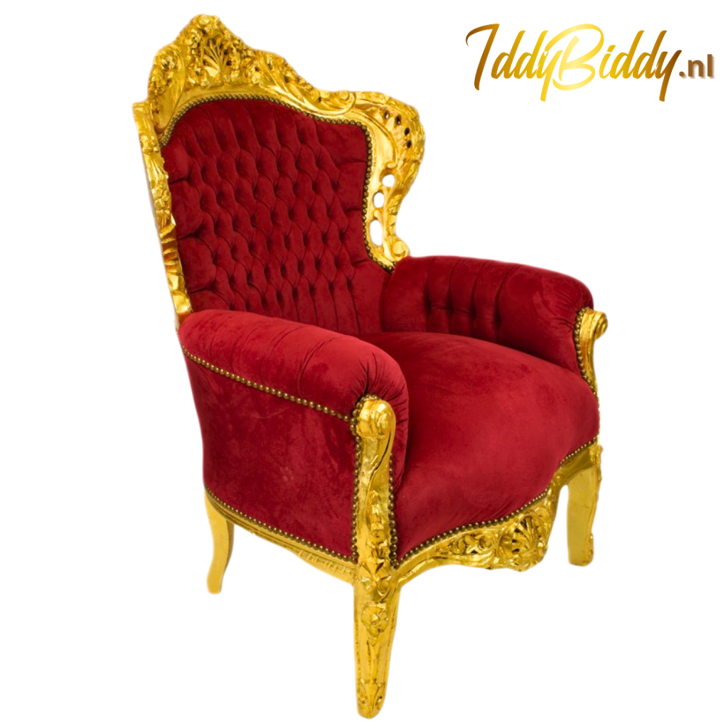De rode elegante barok stoel is een echte aandacht trekker. Wil je opvallen of moeten alle ogen op jou worden gericht? Neem plaats in de heerlijke zachte fluwelen zitting en voel je als royalty.