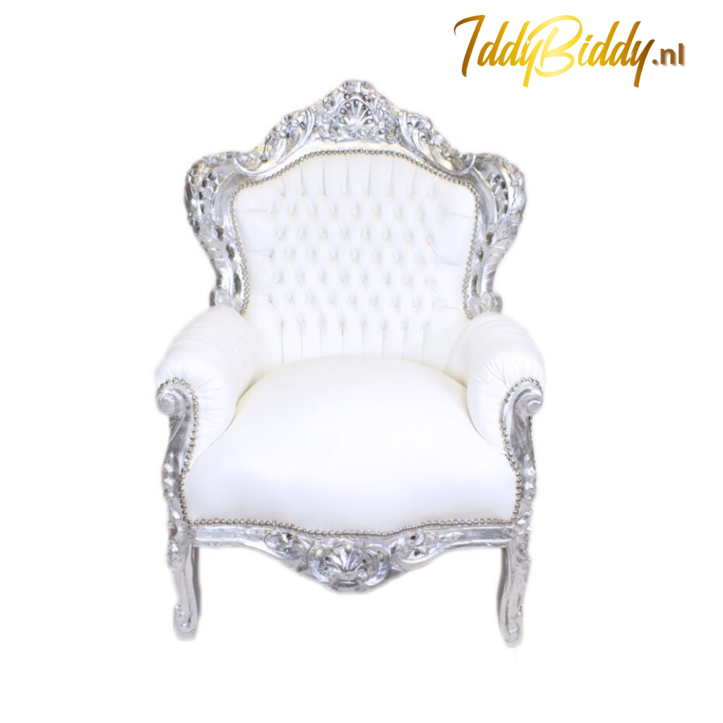 Onze zilver wit barok stoel is perfect voor wie houdt van stijlvolle, tijdloze elegantie. De glanzende zilveren details in combinatie met de frisse witte bekleding zorgen voor een rustige maar luxe uitstraling.